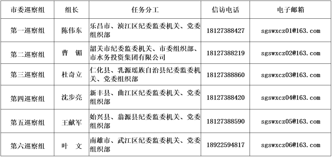 根据韶关市委巡察工作统一部署,截至10月11日,十三届韶关市委第八轮巡察完成进驻工作。市委巡察组将对市纪委监委机关、市委组织部、市水务投资集团有限公司等3个单位(企业)党组织开展常规巡察,对10个县(市、区)纪委监委机关、党委组织部开展提级巡察,对10个县(市、区)党委开展“百千万工程”暨村(社区)“两委”换届风气机动巡察。